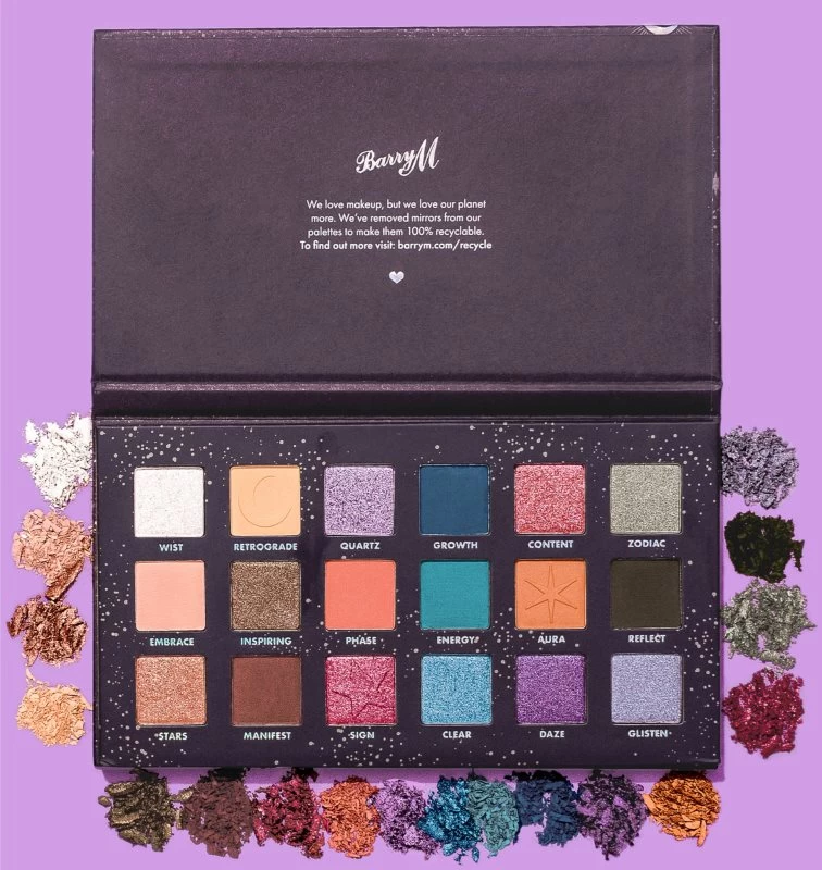 Osez la créativité avec la palette d’ombres à paupières Barry M In The Stars Eyeshadow Palette. Composée de 18 teintes vibrantes dans des finitions mates et scintillantes, elle permet de créer facilement toute une variété de looks. Son écrin, conçu dans une démarche éco-responsable, est décoré d’un ciel étoilé.